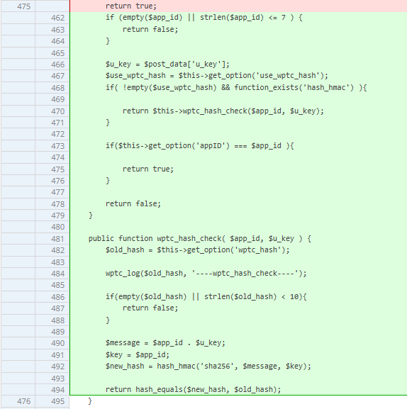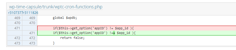 The patch is as simple as changing the appID comparison to use !== instead of !=, which will perform a strict check of variables for value and data type. This partially fixes the initial vulnerability, however in theory it’s still easy to bypass this check by guessing the (relatively short) appID value.