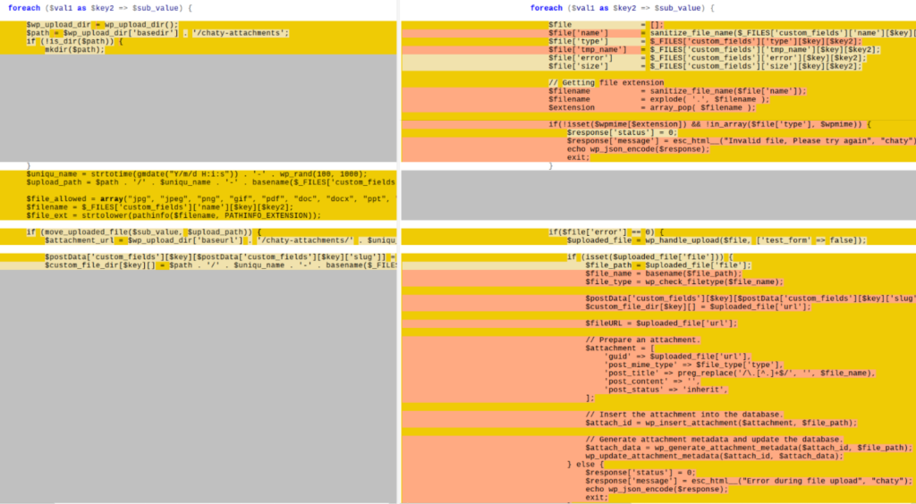 This vulnerability occurred because the code that handles user input didn’t have any authorization or nonce check. An attacker can use the file upload functionality, which is also provided to the end user on the main page. Patchstack assigned CVE-2025-26776 to this vulnerability.