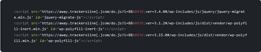 In the initial stages of the infection, attackers replaced the siteurl wp_option value with the following URL: hxxps://away[.]trackersline[.]com/do.js?l=1#