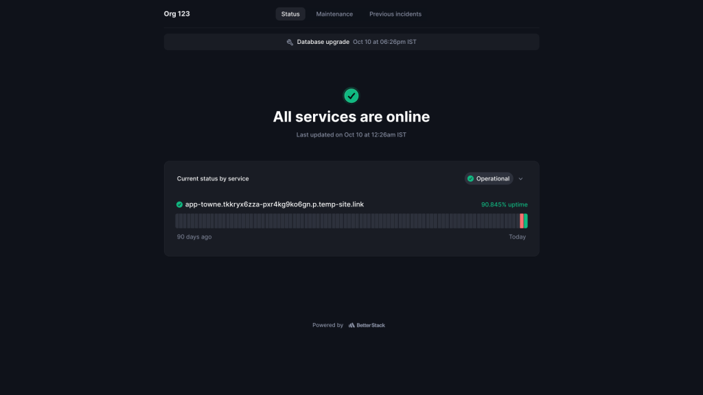 Centralized Information Hub: During service disruptions or planned maintenance, the ‘Status’ page becomes a centralized hub for providing crucial information to your users. It serves as a go-to resource for real-time updates on ongoing incidents, expected resolution times, and any steps users can take to mitigate the impact on their end.