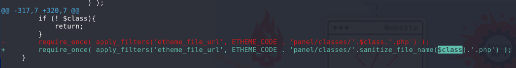 For the Unauthenticated Local Inclusion vulnerability, the vendor applies a sanitize_file_name function to prevent path traversal. The patch can be seen below: