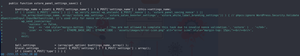 The underlying vulnerable code exists in the xstore_panel_settings_save function: