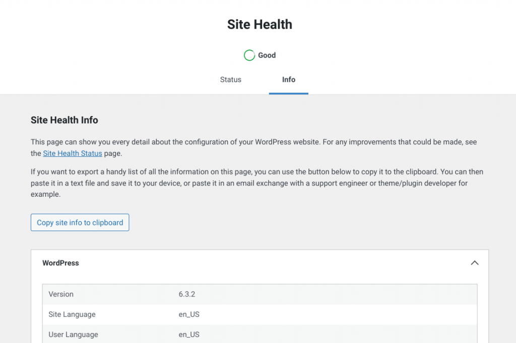 Luckily, WordPress allows you to confirm the versions of the software it relies on. Simply log in to your WordPress admin panel, open Tools, and Site Health. From the Site Health page you will get a list of details – including server versions, if you click on the “Info” tab, then expand the “Server” section.