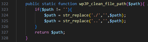 For arbitrary file upload vulnerability, they patched the issue by adding a filename check with wpJP_clean_file_path function.