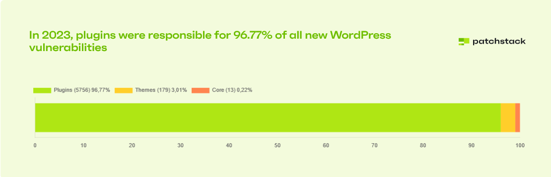 According to our State of WordPress Security In 2024 Report, most WordPress vulnerabilities stem from plugins and themes rather than the core. This highlights the importance of careful plugin selection and regular updates.