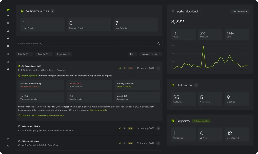 - Vulnerability Management: The plugin should continuously scan WordPress core, themes, and plugins for known vulnerabilities. More importantly, it should offer immediate mitigation strategies, such as virtual patching, to protect against these vulnerabilities even before official fixes are available.