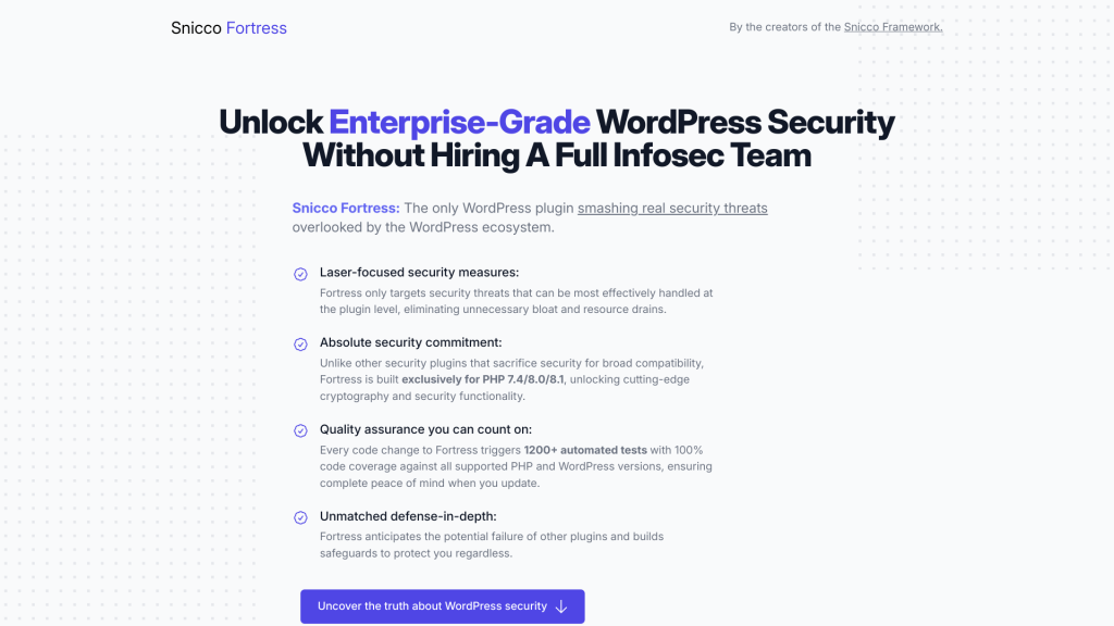 Snicco Fortress is a WordPress security solution that addresses critical security threats and cyber-attacks. It is designed to serve a large number of customers and is built for scale.